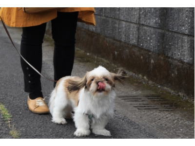 外出のきっかけとして、元保護犬(Rescue dog)と一緒にお散歩。