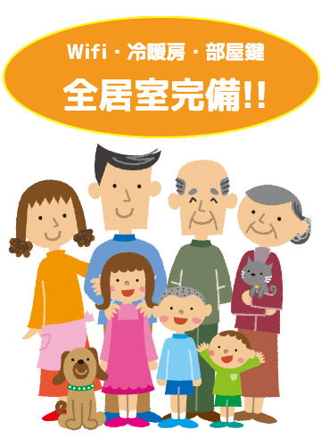 もちづき堂では『Wifi・冷暖房・部屋鍵』全居室完備!
